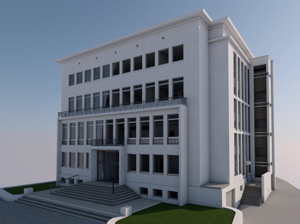 Rénovation de l'hôtel de ville, situé avenue Charlotte 40, Differdange. Relevé intérieur et façades. Élaboration de plans numériques. BIM ArchiCAD + PointCAB