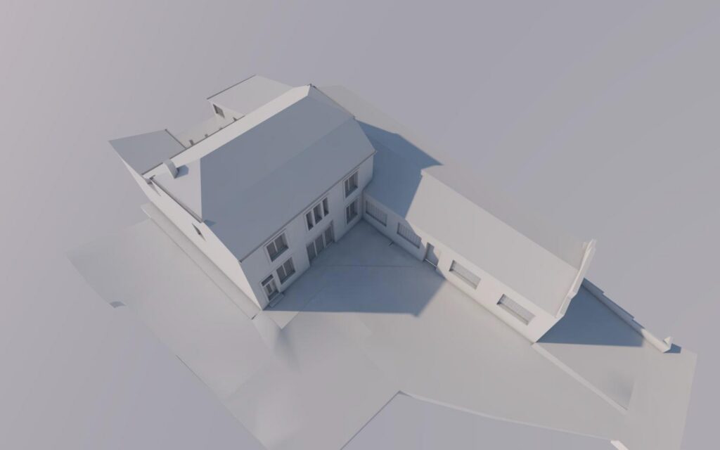 - Restauration d’une ancienne synagogue à Ettelbruck. Élaboration de plans numériques. Relevé intérieur et revêtement de façade. Modélisation BIM. Visualisation 3D. Visite virtuelle. 2020